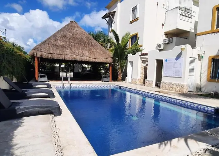 Apartamento En Fraccionamiento Privado 6 Personas 5 Camas Con Piscina Cerca De La Playa offers convenient self-catering facilities, including an equipped kitchen with a refrigerator and kitchenware. Playa Del Carmen, Quintana Roo airport is located at the distance of 5 km from the apartment.